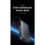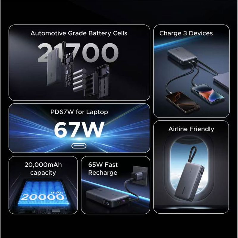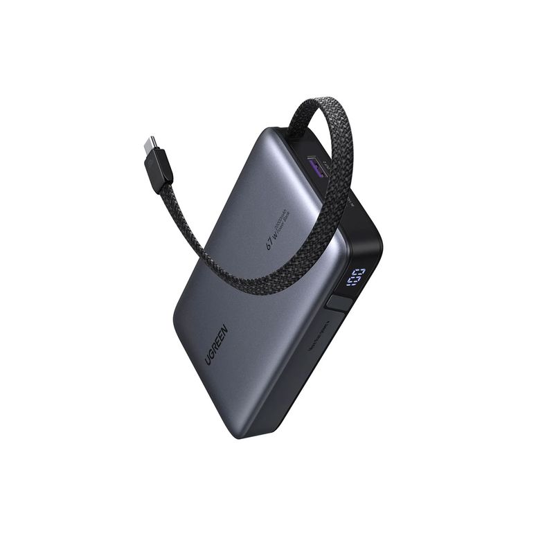 El Power Bank UGREEN 67W 20000 mAh con cable integrado es una batería portátil potente y versátil que te permite cargar tus dispositivos sin complicaciones y con gran eficiencia. Su diseño con cable incorporado elimina la necesidad de llevar cables adicionales, facilitando la carga en cualquier lugar. Ideal para viajes, trabajo, estudio o uso diario cuando estás fuera de casa.