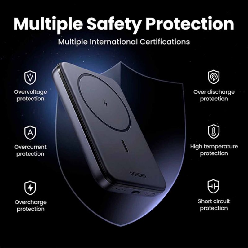 El puerto USB-C del banco de energía de inducción admite una potencia de entrada o salida máxima de 20 W, es compatible con la carga rápida PD/QC 3.0. Las series iPhone 12 - 15 admiten carga magnética. Nota: Para la carga magnética, la funda del teléfono debe ser compatible con MagSafe. Se incluye un cable USB-C a USB-C de 60 W y 0,5 m.