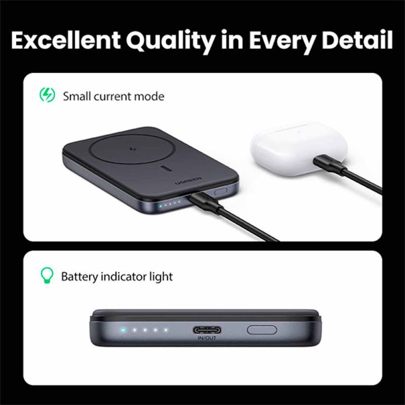 Con un peso pequeño de solo 220 g y un tamaño compacto de 10,58 × 6,87 × 1,93 cm, este banco de energía de inducción cabe perfectamente en su bolsillo. Podrás cargar tu teléfono inteligente en cualquier momento y en cualquier lugar sin necesidad de cables, lo que proporciona más diversión al viajar.