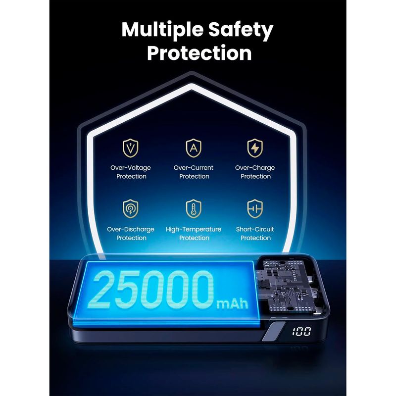 Capacidad masiva de 25 000 mAh: El banco de energía UGREEN de 25 000 mAh puede cargar completamente la MacBook Pro de 14" hasta 1,3 veces, el Galaxy S23 Ultra hasta 3 veces y el iPhone 14 hasta 5,6 veces. La batería de alta capacidad ofrece de 5 a 7 días de duración, ideal para viajes, viajes de negocios u otras actividades al aire libre. Olvídate de los apagones repentinos.