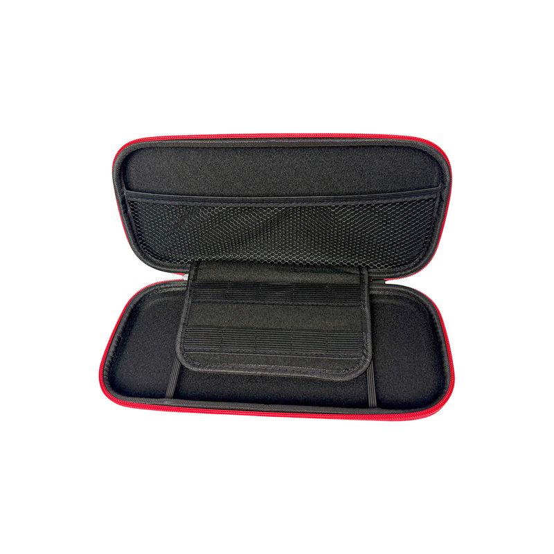 Su interior acolchado cuenta con compartimentos ajustados para la consola, cartuchos de juego. El cierre de cremallera doble y el asa ergonómica aseguran un transporte cómodo y seguro.