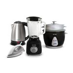 Combo compuesto por:, - Licuadora: Modelo REC-CLLNE103: Capacidad 1.5L, Carcasa de polipropileno, 2 Velocidad + Pulso, Cuchilla plana de 04 aspas, Pin de seguridad, Vaso de vidrio refractario, Base antideslizante y 350 Watts de potencia., - Olla Arrocera: Modelo REC-CLONE101: Capacidad 1.8L, Carcasa de acero al carbono pintado en Negro, Tazón antiadherente libre de PFOA, Tapa de vidrio templado, 2 funciones (cocción y mantener caliente), Espátula y taza medidora y 600 Watts de potencia., - Hervidor: Modelo REC-INHE1801: Capacidad 1.9 L, Carcasa de acero inoxidable y polipropileno, Indicador de nivel, Inalámbrico, LED indicadora, Base removible 360°, Switch de encendido y apagado y 1,500 Watts de potencia., - Plancha: Modelo REC-CLPGS101: Cuerpo de polipropileno, Base con recubrimiento antiadherente, Luz indicadora, Sistema selector de temperatura, 5 tipos de telas: Algodón, lino, seda, lana, poliéster, Cable de 1.5 mt. Giratorio, Luz LED y 1,000 Watts de potencia.