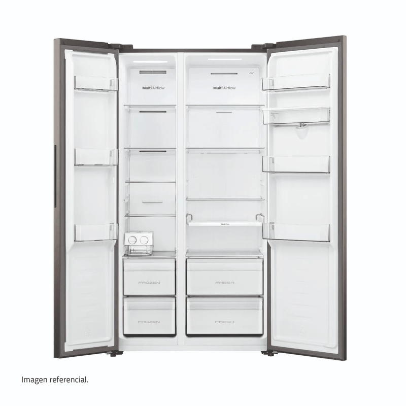 La Refrigeradora Indurama Side by Side RI-795 (529L) es la opción perfecta para quienes buscan modernidad y orden. Su diseño de dos puertas verticales permite una organización impecable, mientras que su tecnología No Frost evita la formación de hielo. Equipada con un eficiente compresor Inverter y clasificación energética A, garantiza un bajo consumo. Incluye panel digital, dispensador de agua manual y una generosa capacidad de 186L en el freezer. ¡Es elegancia, durabilidad y frescura superior para tu hogar!