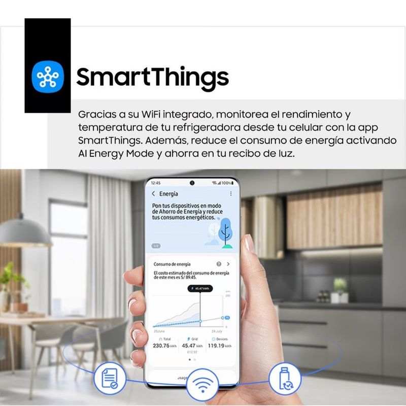 Esta refrigeradora Samsung destaca por su eficiencia energética A, lo que significa un menor consumo de energía y un ahorro en tu recibo de luz. Su sistema de enfriamiento No Frost evita la formación de hielo, manteniendo tus alimentos frescos por más tiempo. El compresor Digital Inverter te asegura un funcionamiento silencioso y duradero. Con 3 gavetas y luz interna, organizar y encontrar tus alimentos será muy sencillo.