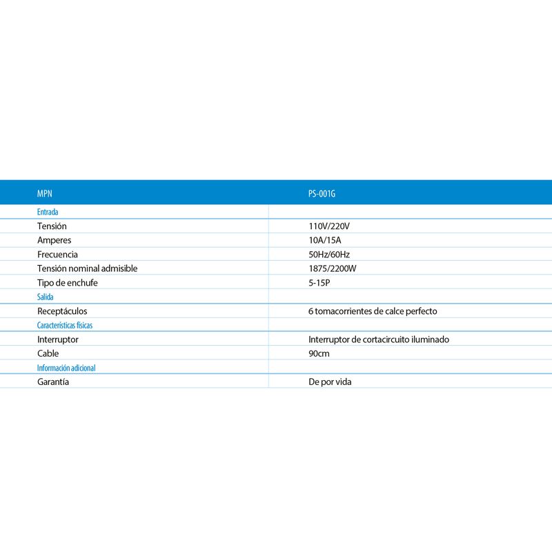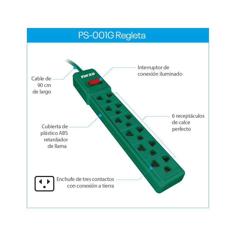 Optimiza la distribución eléctrica de tus dispositivos con la regleta Forza PS-001G. Equipada con 6 tomacorrientes universales NEMA y una capacidad de hasta 2200W, garantiza seguridad y compatibilidad en entornos donde se utilizan diferentes tipos de enchufes. Su material ABS retardador de llama y su interruptor de reposición automática ofrecen protección avanzada contra sobrecargas. Ideal para el hogar u oficina, incluye soporte de montaje en pared y una garantía de por vida que respalda su durabilidad.