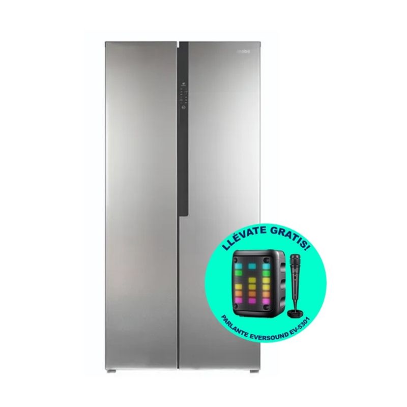 REGRIGERADORA MABE SIDE BY SIDE NO FROST INVERTER 511 LTS MSD518LKRSS0 INOX + PARLANTE EVERSOUND EV5301 DE REGALO