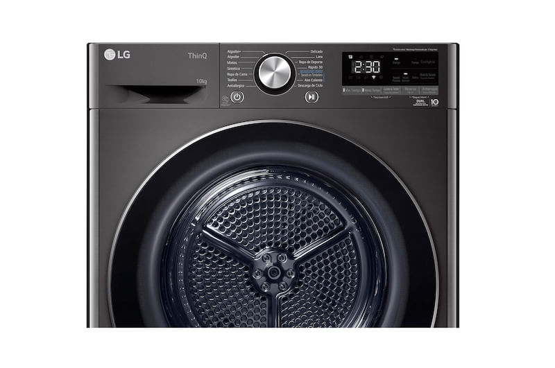 Características principales Secado de 10kg Motor Dual Inverter Heat Pump ThinQ: Conectividad WI-FI Luz LED en el interior de la tina El color del producto ha sido definido por el fabricante. Tenga en cuenta que la tonalidad puede diferir de la mostrada en la página web debido a factores externos, tales como la iluminación o la resolución de la pantalla. Considere esta posible variación al momento de realizar su compra.