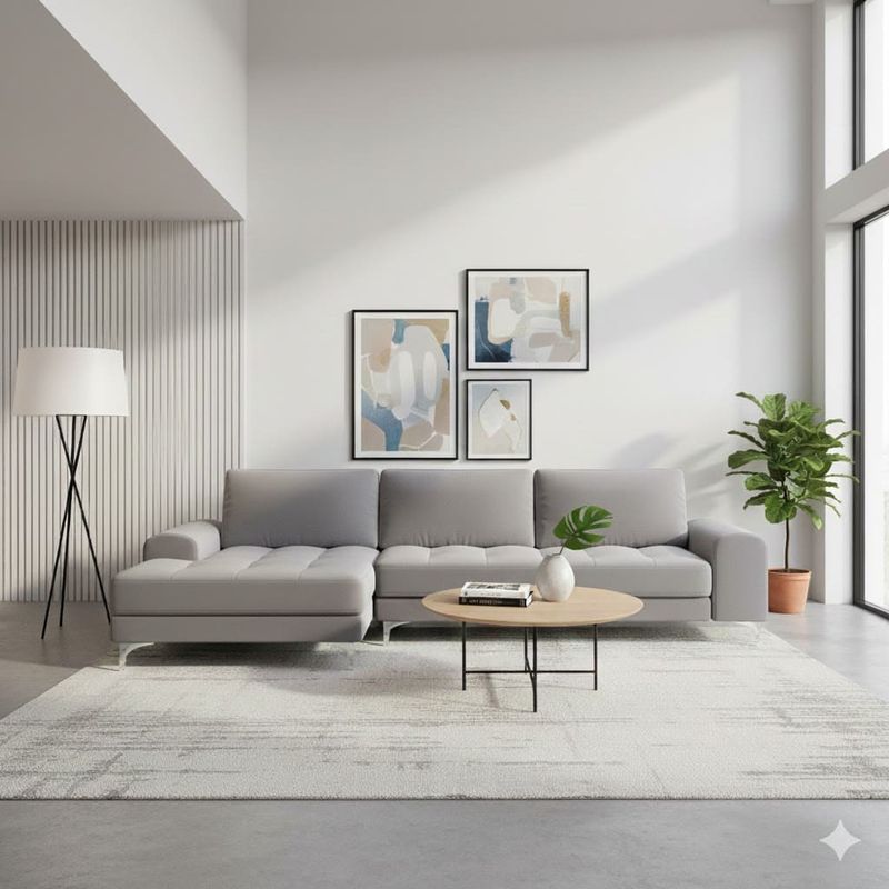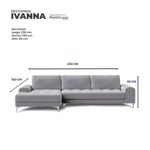 El Sofá Seccional Ivanna es la pieza clave para crear un ambiente moderno, luminoso y muy confortable. Su tapiz Iker de alta calidad en un tono Gris Plata proporciona una base neutral y elegante, ideal para cualquier estilo. El diseño incorpora una amplia Chaiselongue para el máximo relax y comodidad. El Modelo Ivanna se distingue por sus líneas limpias y su enfoque en la funcionalidad moderna, que contrasta con sus cálidos detalles de madera.