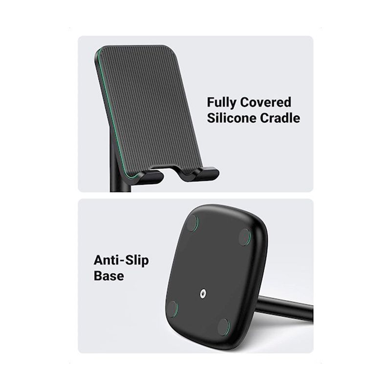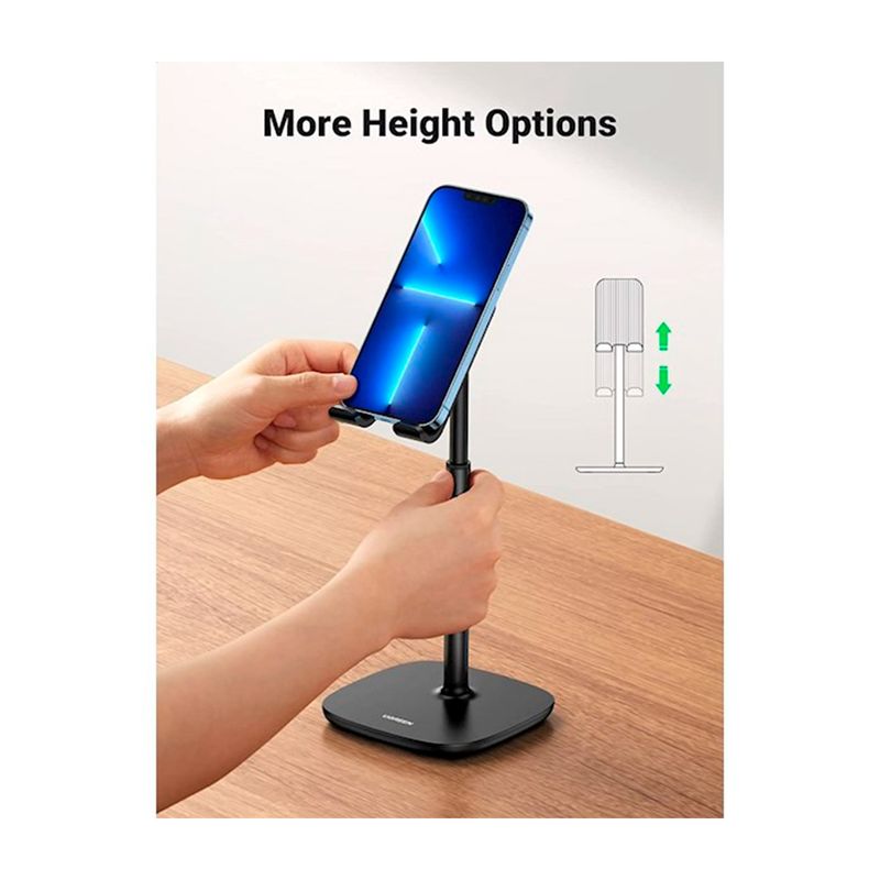 Este soporte móvil cuenta con un diseño ajustable que te permite adaptarlo a diferentes dispositivos y ángulos de visión. Puedes ajustar la altura y el ángulo del soporte para obtener la mejor posición para tu dispositivo.