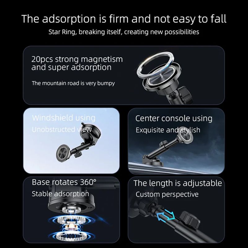 La base de ventosa puede girar 360 grados y cambiar el ángulo a voluntad, lo que le brinda una gran experiencia.