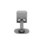 La base circular tiene un diseño con peso integrado que proporciona estabilidad, evitando que el soporte se vuelque incluso con dispositivos más grandes o al ajustar el brazo.