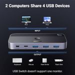 El sistema ofrece múltiples formas de alternar entre los dos ordenadores conectados, incluyendo un práctico botón en la unidad principal, un mando a distancia inalámbrico y una función de conmutación automática por detección de señal. Esta flexibilidad te permite elegir el método que mejor se adapte a tu flujo de trabajo, desde un simple clic hasta el cambio automático al encender uno de los equipos.