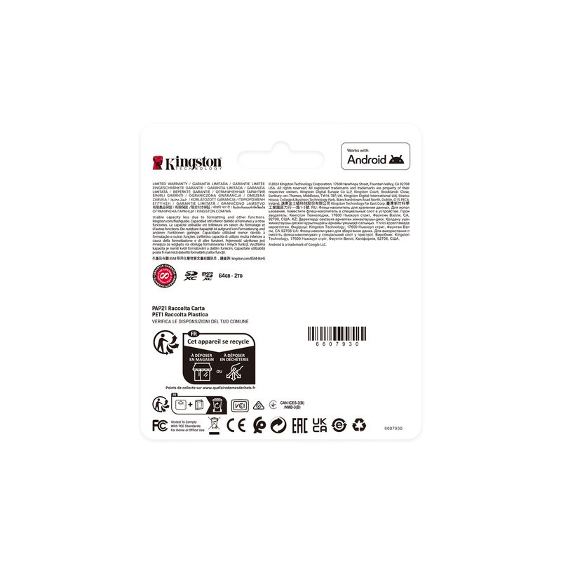La memoria Kingston microSDXC Canvas Select Plus Gen3 ofrece un rendimiento confiable y velocidades de transferencia de hasta 150MB/s, ideal para smartphones, tablets, cámaras y dispositivos IoT. Diseñada para ofrecer almacenamiento rápido y eficiente, garantiza una experiencia fluida en fotografía, video y aplicaciones móviles.