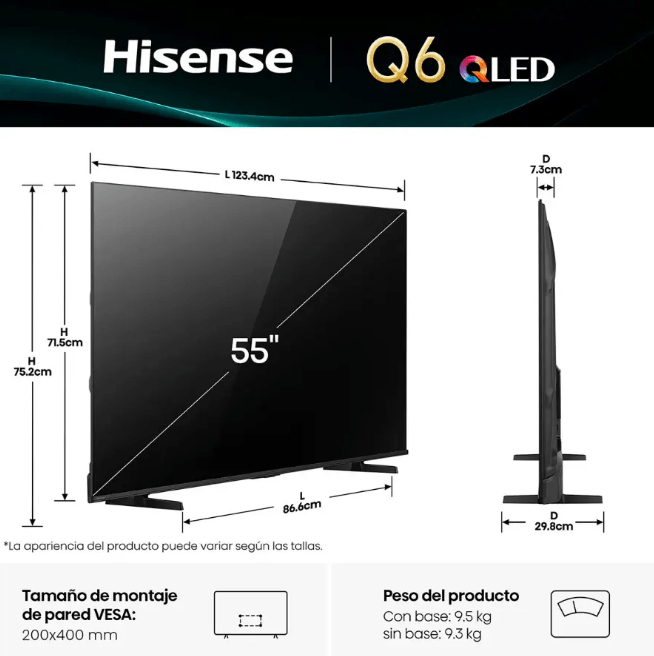 TELEVISOR HISENSE QLED 55" UHD SMART TV 55Q6QV VIDDA MODELO 2025