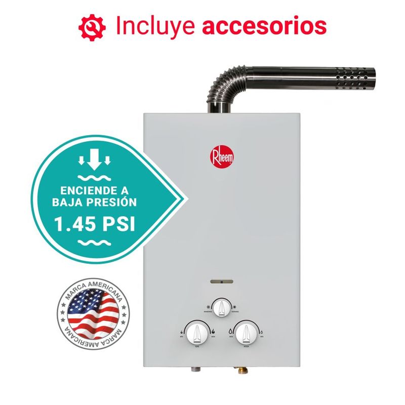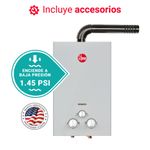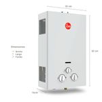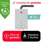 - Calentador de agua instantáneo de Gas Natural (GN) de Tiro Forzado - Controles mecánicos - Encendido automático con bajo caudal y baja presión - Boton de encendido y apagado - 7 Sistema de seguridad.