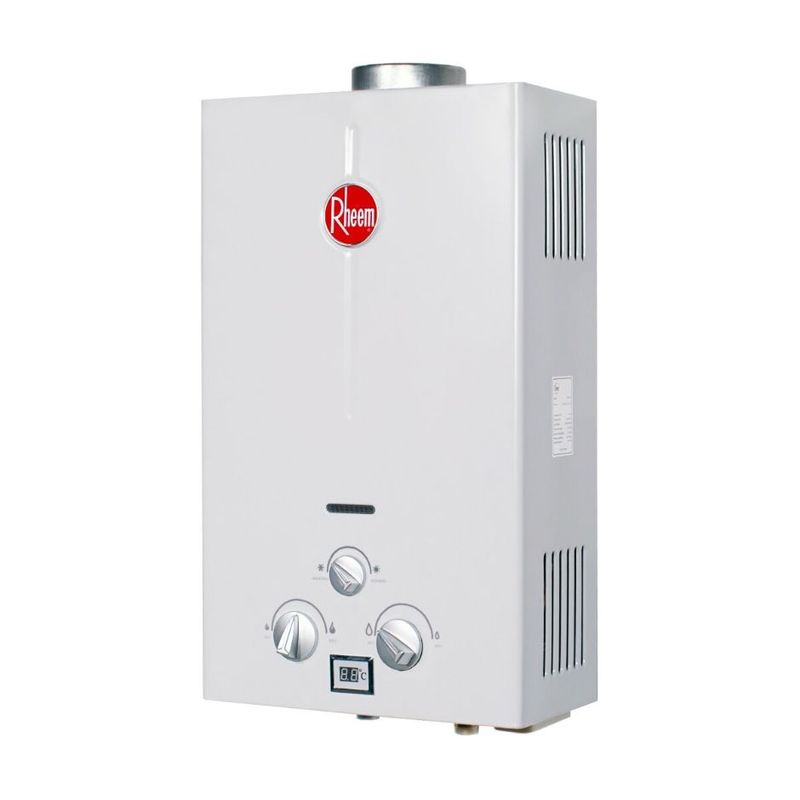 - Calentador de agua instantáneo de Gas Natural (GN) Tiro Natural - Controles mecánicos - Encendido automático con bajo caudal y baja presión - Display de temperatura - Boton de encendido y apagado - 6 Sistema de seguridad. Rheem, empresa Americana, cuenta con más de 100 años de experiencia, es el Líder mundial en calententamiento de agua, con presencia en más de 75 países. El nuevo grado de confort ahora esta en Perú. Instalación gratuita.