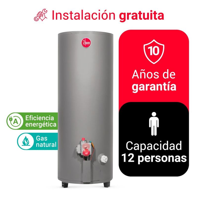 - Tanque porcenalizado con fórmula patentada Rheemglas protege el tanque contra la corrosión que produce el agua.