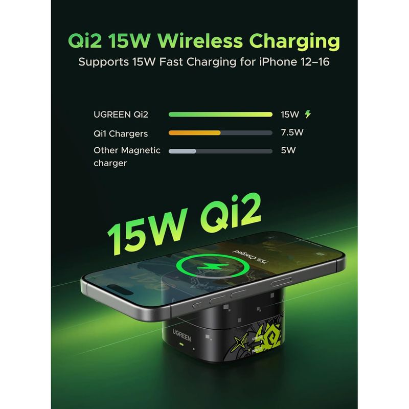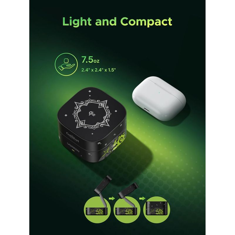 El UGREEN 2 en 1 Magnetic Wireless Charger Genshin Impact Edition (modelo W702-35316GI+) combina estilo exclusivo y funcionalidad avanzada en un cargador diseñado para fans de la saga. Con soporte para carga inalámbrica magnética y base secundaria, es la solución práctica y elegante para mantener tus dispositivos siempre listos.