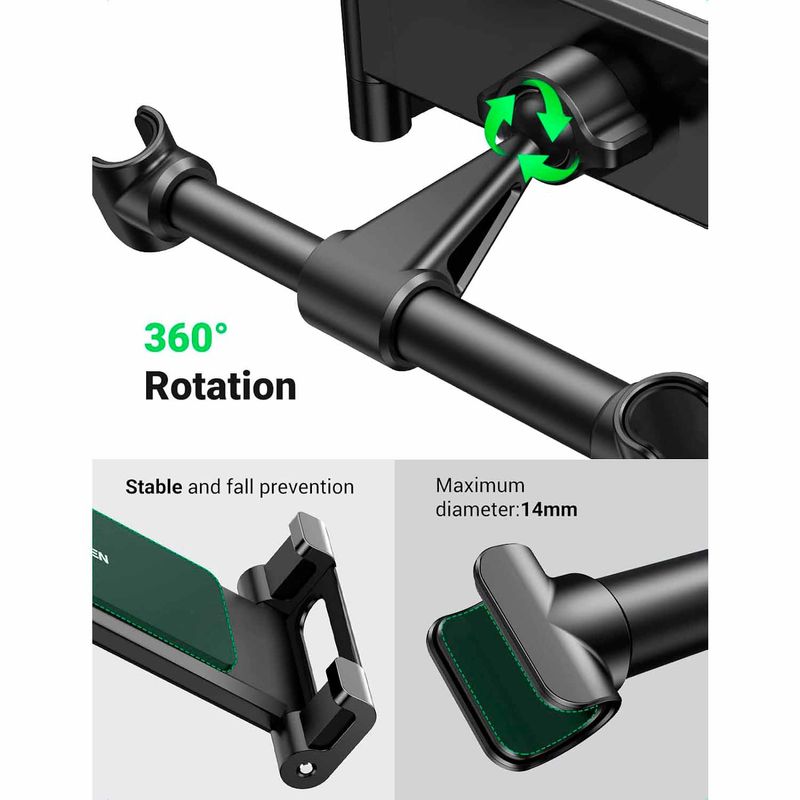 DISEÑO ÚNICO: Este soporte auto es ligero y compacto, está diseño ahuecado, permite la carga durante el tiempo que está colocado en el soporte. Además, este soporte tablet coche sirve para todos los reposacabezas que la distancia entre las barras del reposacabezas es 10.1cm-14.4cm.