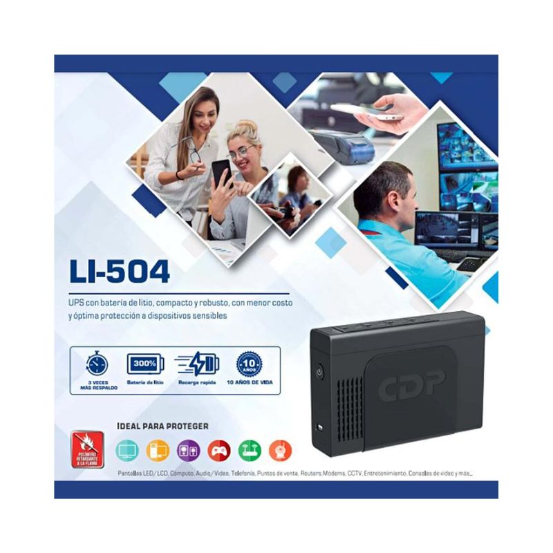 El innovador UPS CDP Interactivo Portatil LI-504I, basado en baterías de litio (LiFePO4), está diseñado para aplicaciones críticas como equipos de procesamiento de datos y telecomunicaciones.