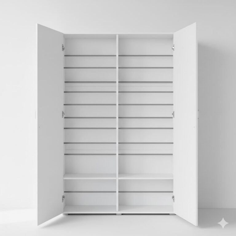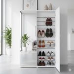 La Zapatera Cronos con Espejo es la fusión perfecta entre un organizador de calzado de gran capacidad y un espejo de cuerpo entero, optimizando al máximo el espacio en tu dormitorio. Diseñada para almacenar hasta 30 pares de zapatos, esta pieza fabricada en melamina resistente no solo pone orden en tu colección, sino que aporta luminosidad y funcionalidad a tu rutina diaria. El Modelo Cronos transforma cualquier rincón en un vestidor funcional gracias a su diseño vertical y sus acabados modernos.